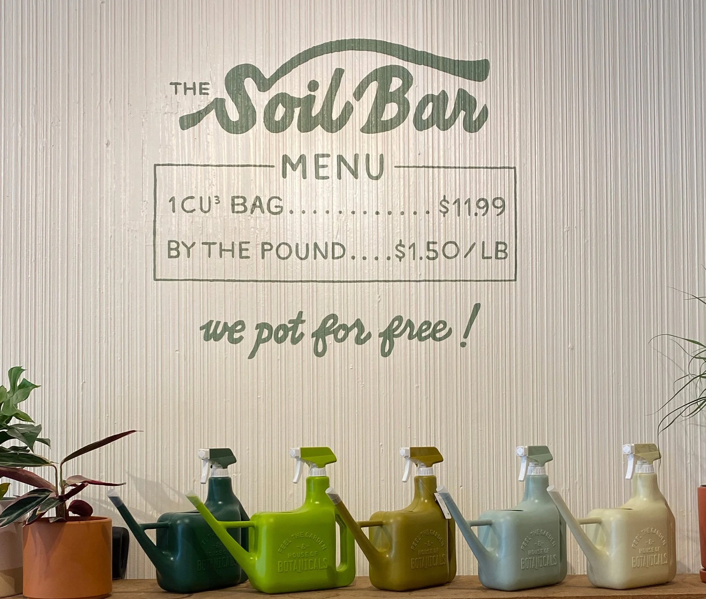Pups Plants and Goods needed new window signage and an interior mural for their shop’s expansion in Summer 2023. They were able to double their space and enhance features to their store like a larger space for repotting plants called the “Soil Bar”.